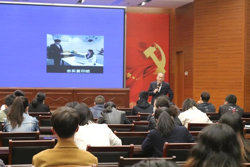 11月3日下午,在台州市总工会和台州湾新区总工会的大力支持下,开投集团党委特邀企业培训师,中国电信集团内训师,CAF专业引导师-卢健阳为集团100多名干部职工作《职场沟通技巧》专题授课。