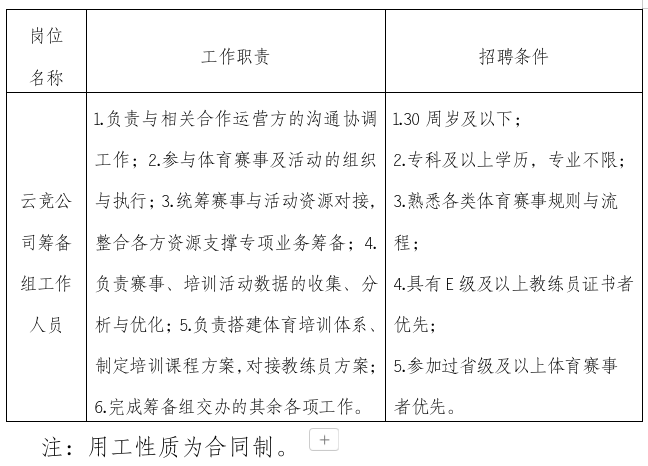 台州市云竞文体发展有限公司(以下简称“云竞公司”)是台州市城兴城市建设发展有限公司下属全资子公司。公司于2025年9月成立,注册资本金1000万元,公司主营体育场馆经营管理、体育赛事策划、体育竞赛组织、组织体育表演活动、组织文化艺术交流活动、城市公园管理、酒店管理,会议及展览服务等,公司负责“世界运动会台州国际中心”和“陆地游轮”项目的运营、管理等工作。现因公司发展需要,面向社会公开招聘筹备组工作人员1名。具体事项公告如下: